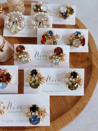 淡いカラー × gold flower ×小粒のwhiteビジュー♡